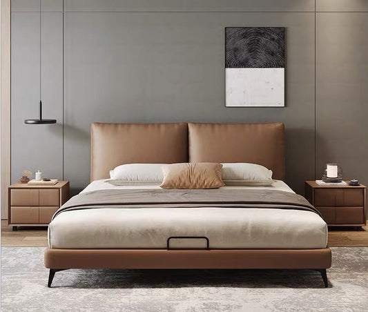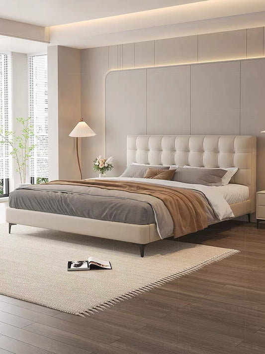 Genuine Leather Tofu Block Back Leather Bedroom Bed