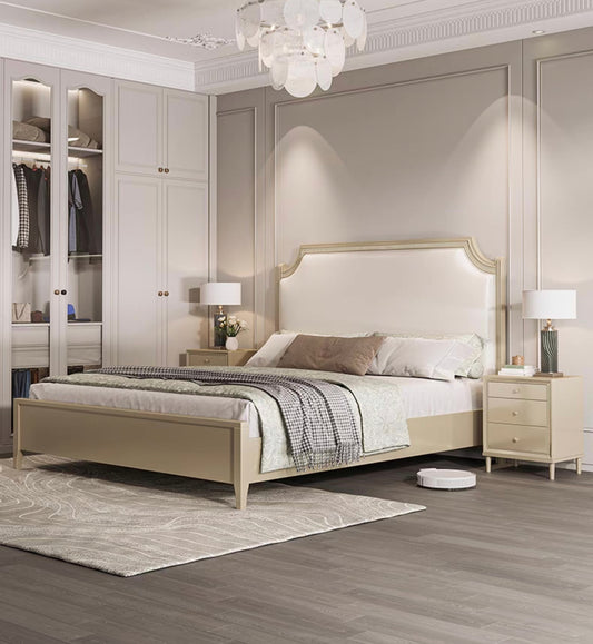 Light Luxury Style French Solid Wood Bed-Square Headboard