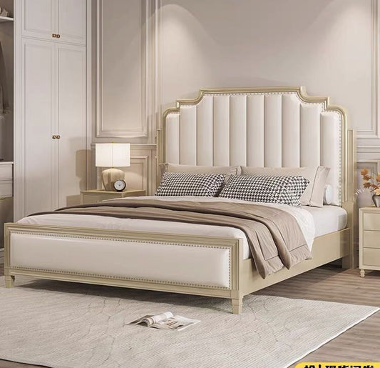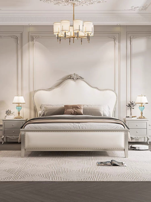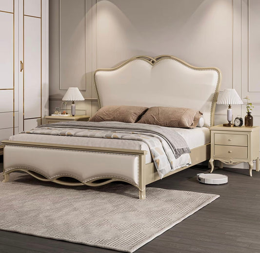 Luxury French Style Solid Wood Bed - High Headboard Design