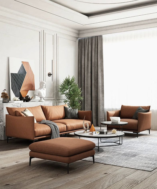 Minimalist and Durable Genuine Leather Sofa