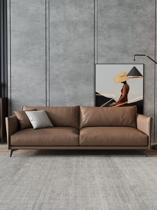 Light Brown Minimalist Wear-Resistant Leather Sofa