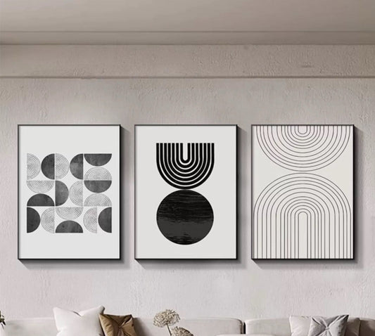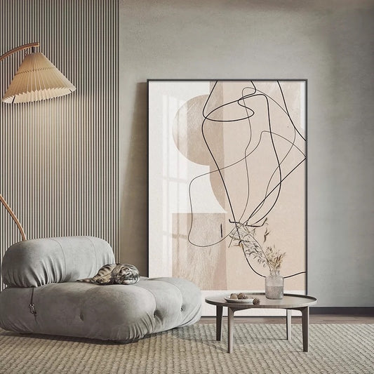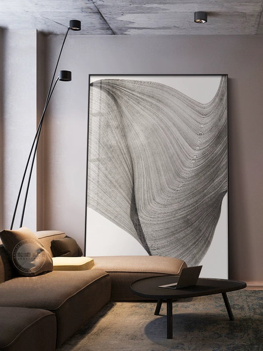 Minimalist Modern Black and White Line Abstract Decorative Painting